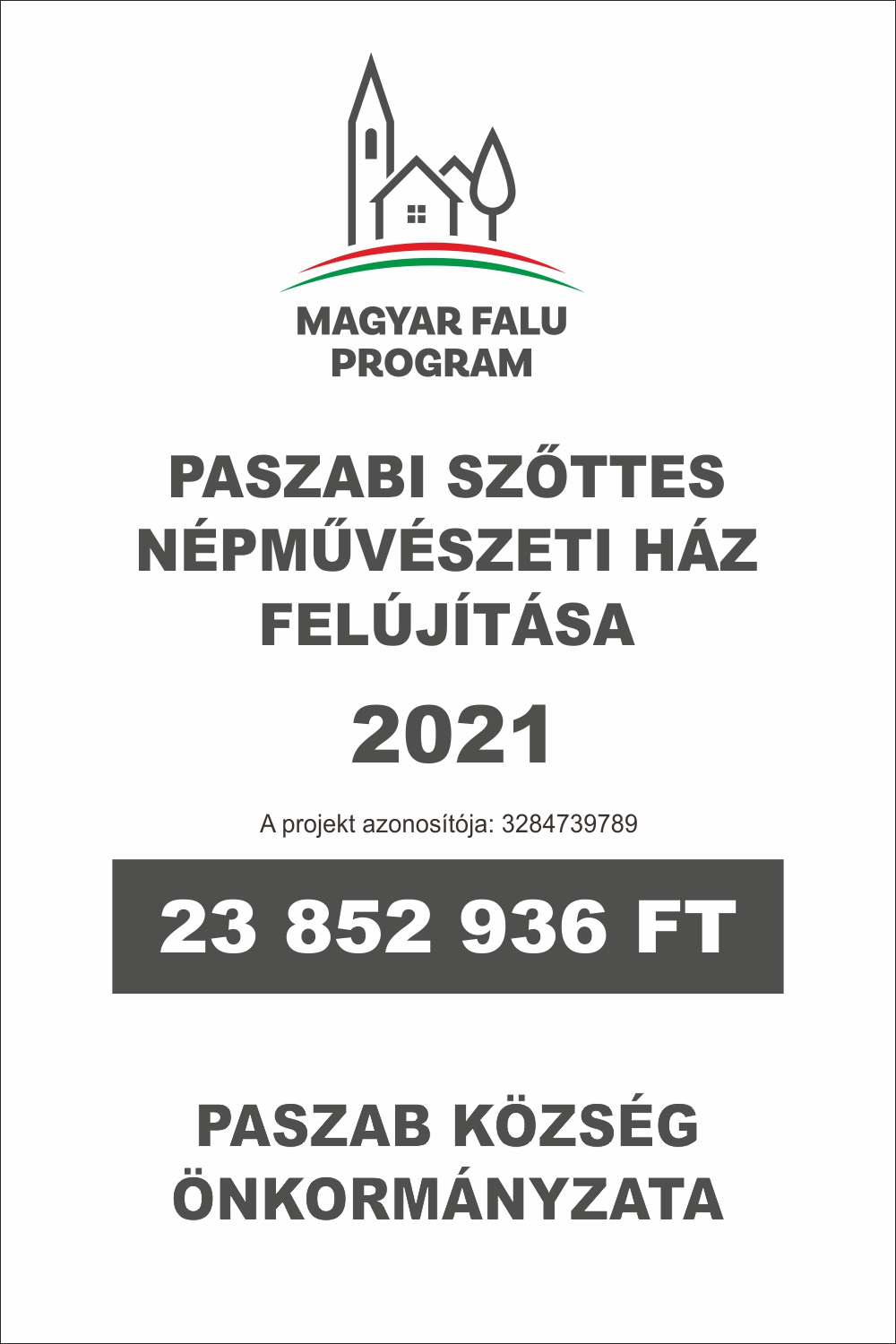 Paszab Községben a Magyar Falu Program (MFP-ÖTIK/2021) Önkormányzati tulajdonban lévő ingatlanok fejlesztése - 2021 pályázat keretében a község központjában (Paszab, Fő út 12.) elhelyezkedő Szőttes Népművészeti Ház felújítása valósul meg.