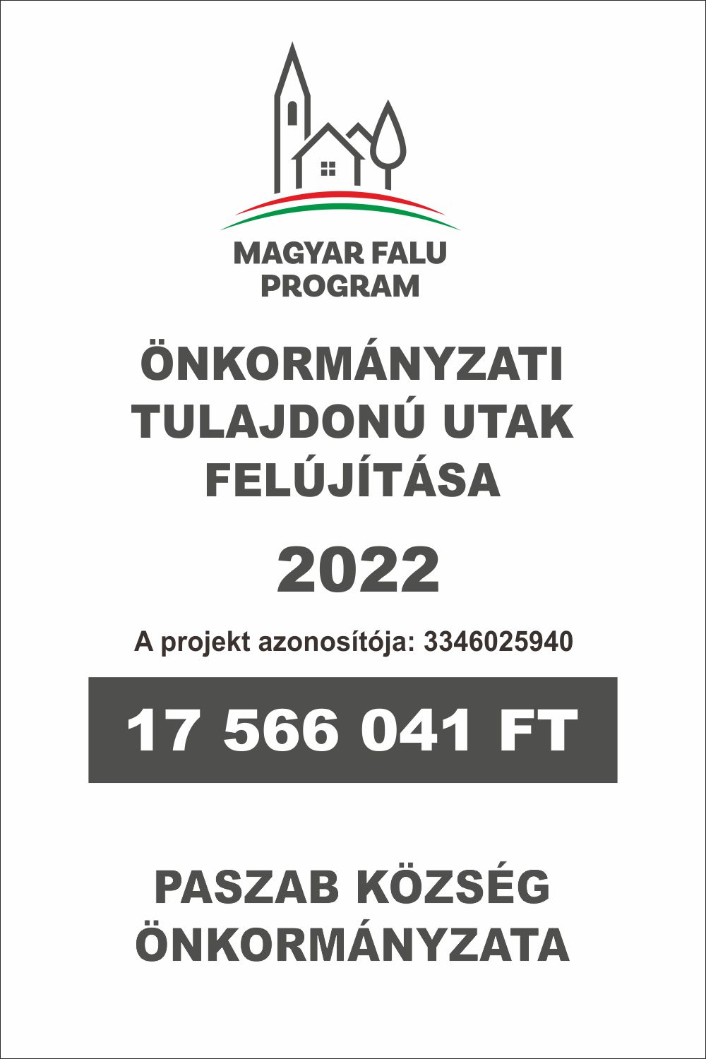 Paszab Községben a Magyar Falu Program (MFP-UHK/2022) Út, híd, kerékpárforgalmi létesítmény, vízelvezeto rendszer