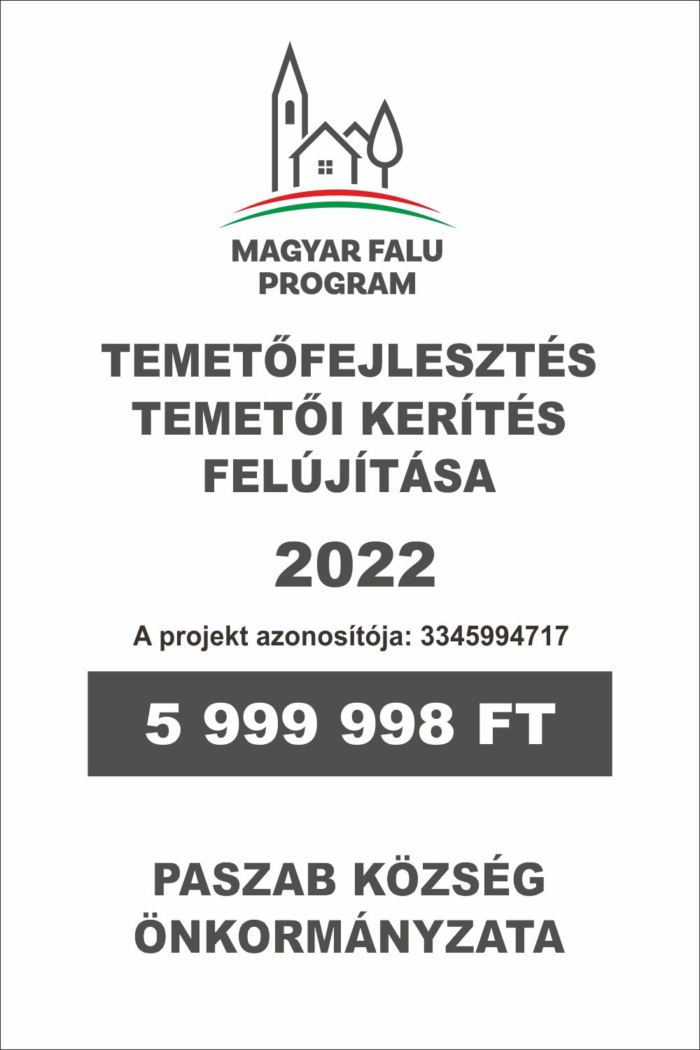 Paszab Községben a Magyar Falu Program (MFP-ÖTIF/2022) Önkormányzati temetok infrastrukturális fejlesztése - 2022 pályázat megvalósításával a községi temető kerítése újult meg.