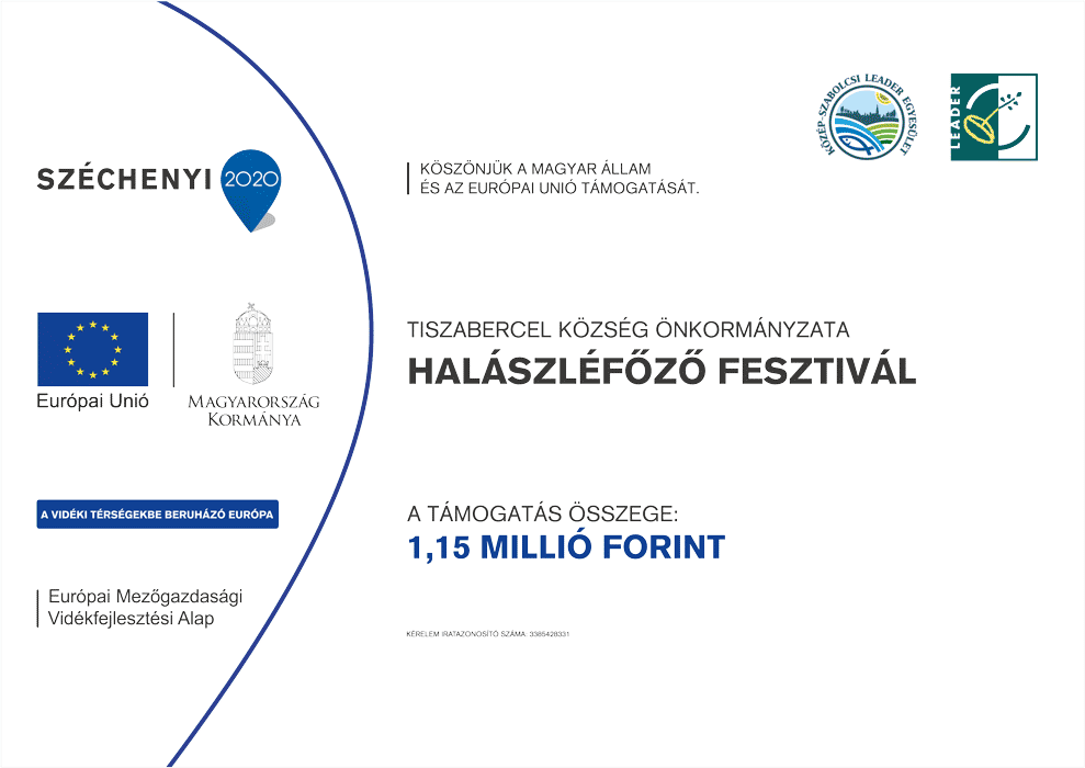 Kedvezményezett neve: Tiszabercel Község Önkormányzata Rendezvény neve: Halászléfőző Fesztivál Támogatás összege 1.149.500 Ft Kérelem iratazonosítója: 3385428331