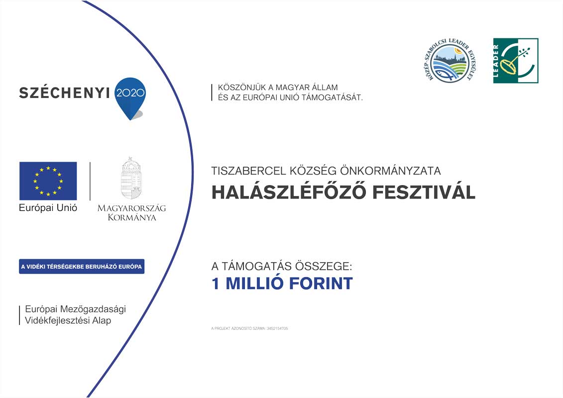 Kedvezményezett neve: Tiszabercel Község Önkormányzata Rendezvény neve: Halászléfőző Fesztivál Támogatás összege 1.001.394 Ft A projekt azonosítószáma: 3452154705