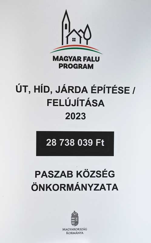 Kedvezményezett: Paszab Község Önkormányzata Támogatói okirat iratazonosító száma: 3480224452 Projektazonosító: 3455054222 Elnyert támogatási összeg: 28 738 039 Ft.