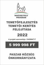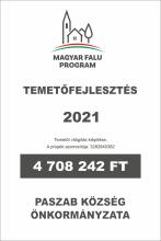 Paszab Községben a Magyar Falu Program (MFP-ÖTIF/2021) Önkormányzati temetok infrastrukturális fejlesztése - 2021 pályázat megvalósításával a  község köztemetőjében temetői közvilágítás került kiépítésre.  Ennek keretében energiatakarékos, LED-es fényforrású lámpák kerültek elhelyezésre.